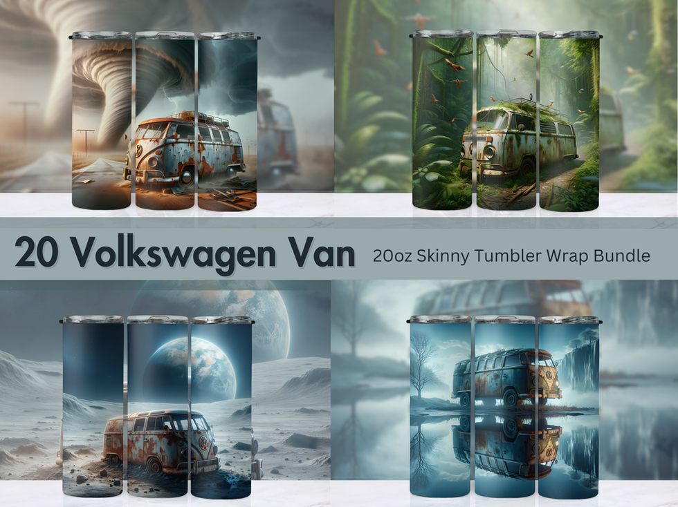 Add a retro, road-trip vibe to your tumblers with this 20x Volkswagen Van 20oz Skinny Tumbler Wrap Bundle! This high-resolution digital download includes 20 unique designs, each featuring a vintage Volkswagen van in various vibrant settings. From beachside adventures to scenic landscapes, each design captures the spirit of freedom and adventure, making this bundle perfect for van life enthusiasts and lovers of classic, nostalgic designs.
