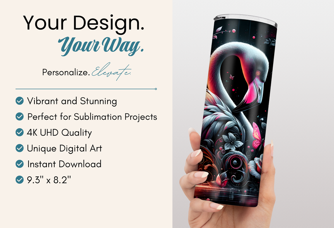 Dive into a world of mysterious elegance with this Dark Fantasy Flamingo design, perfect for your 20oz skinny tumbler! This high-resolution digital download includes a single PNG file (9.3" x 8.2", 300 DPI), ideal for sublimation projects that capture the haunting beauty of a flamingo in a dark, fantasy-inspired setting. The design features a dramatic, ethereal flamingo with dark, moody tones, surrounded by mystical elements like dark foliage, glowing accents, and surreal textures. The deep color palette and otherworldly atmosphere make this a unique and captivating design for those who love dark fantasy themes.