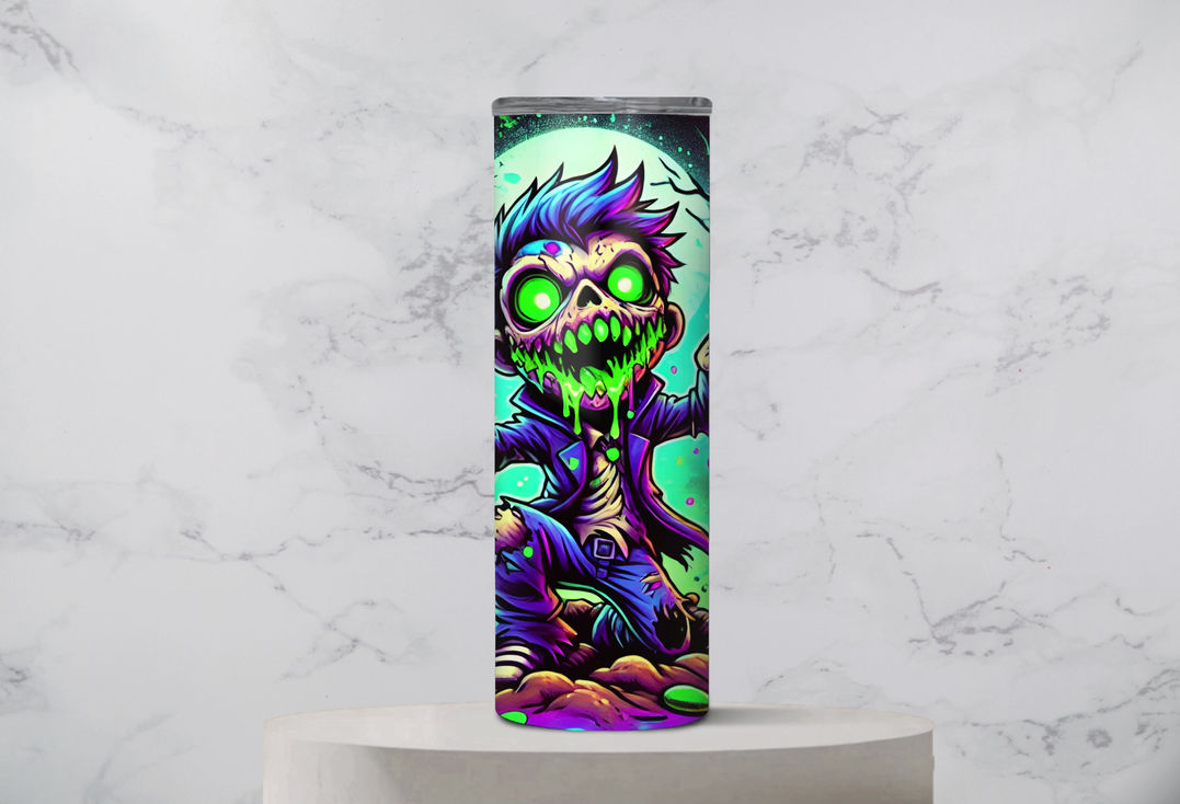 Embrace the eerie vibes of Halloween with this Evil Halloween Zombie 20oz Skinny Tumbler Wrap! This high-resolution digital download features a Halloween-themed cartoon illustration titled "Neon Instinct", showcasing an evil zombie crawling out of the ground in a spooky graveyard. The zombie’s creepy, neon-colored features stand out in a vibrant and haunting glow, making it a perfect blend of spooky and stylish. Ideal for fans of the macabre and Halloween-inspired designs, this wrap will add an eerie yet vibrant touch to your tumbler collection.