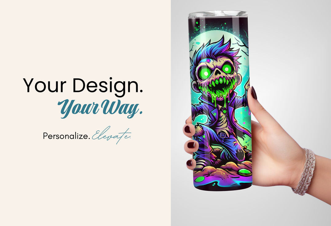 This "Neon Instinct" zombie design, with its creepy, glowing features and haunting atmosphere, is perfect for creating tumblers that embrace the spooky spirit of Halloween. Add this chillingly vibrant design to your collection today!
