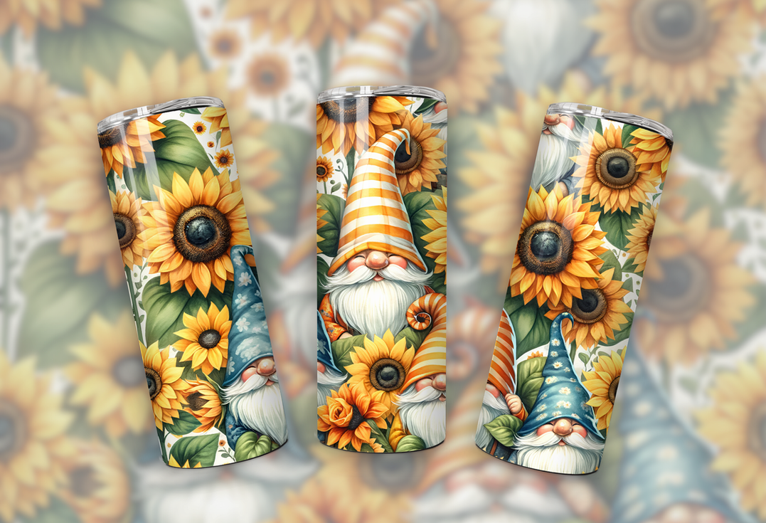 - 1x Gnomes and Sunflowers Pattern 20oz Skinny Tumbler Wrap