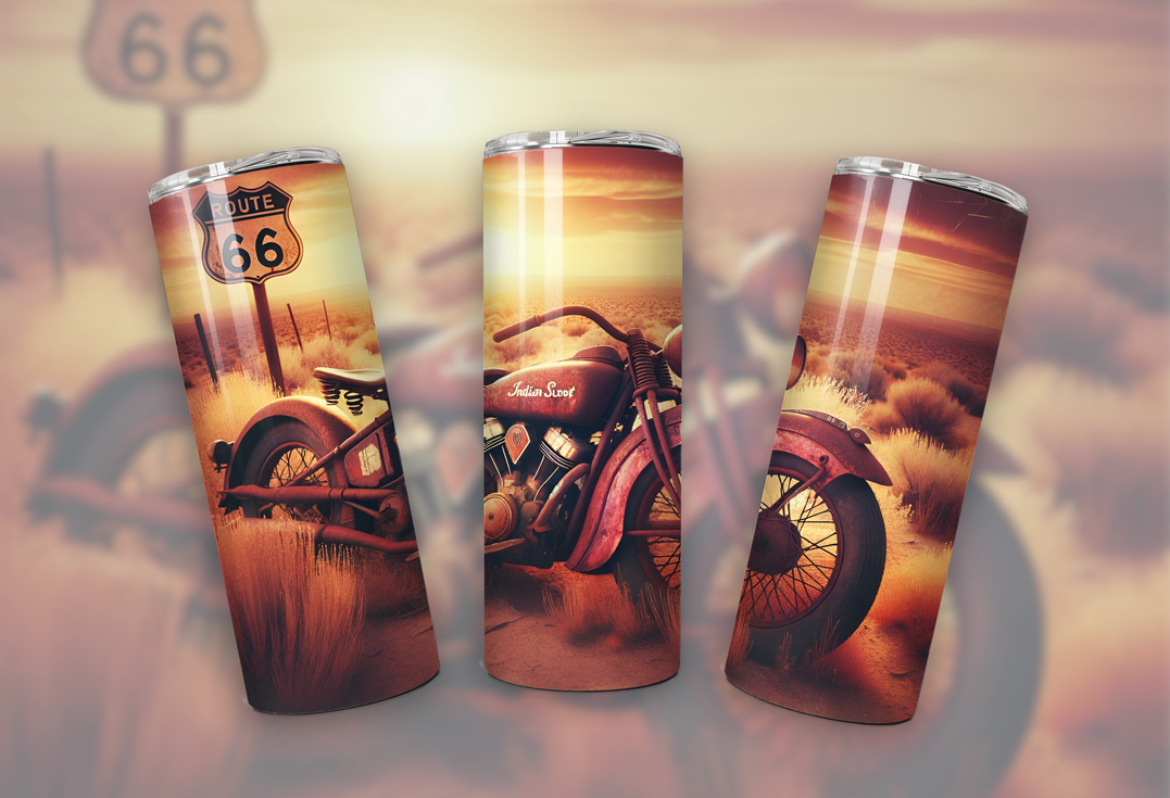 - 1 x Indian Scout Motorbike Route 66 Tumbler Wrap (300 DPI PNG, watermark-free)