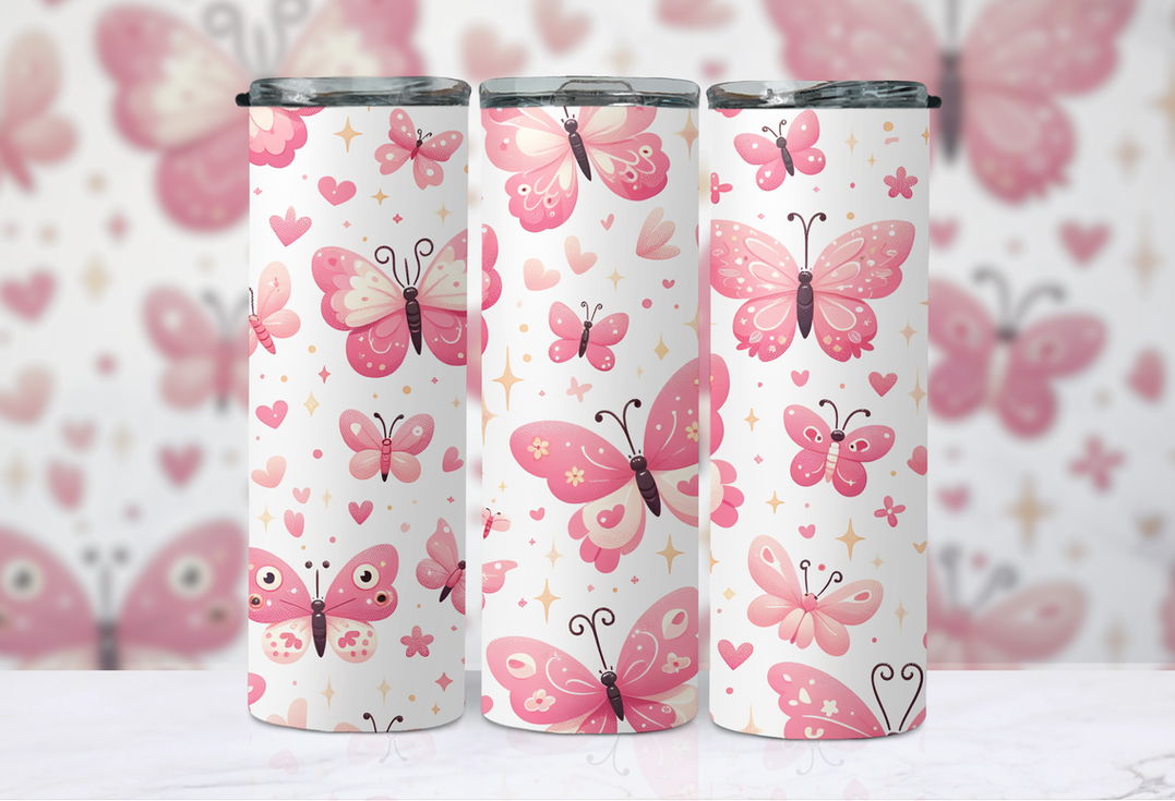 This enchanting design, featuring pink butterflies fluttering gracefully, adds a soft and vibrant touch to your tumbler projects, perfect for those who love nature, delicate patterns, and the beauty of butterflies.