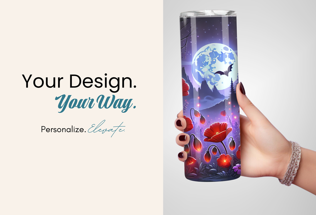 This Red Poppies Night Landscape design, with its glowing flowers and magical atmosphere, is perfect for creating tumblers that capture the eerie and enchanting side of Halloween. Add this captivating design to your collection today!