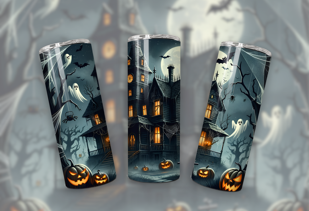 - 1x Spooky Haunted House 20oz Skinny Tumbler Wrap