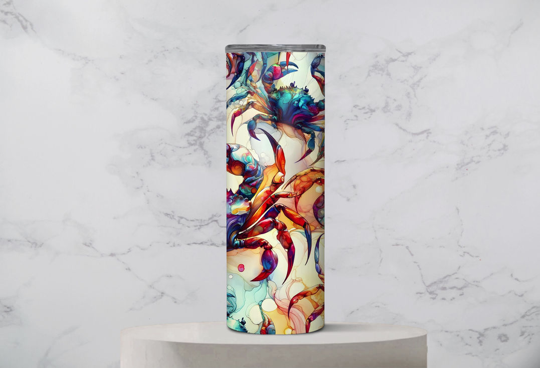 Watercolor Abstract Crab Pattern 20oz Skinny Tumbler Wrap